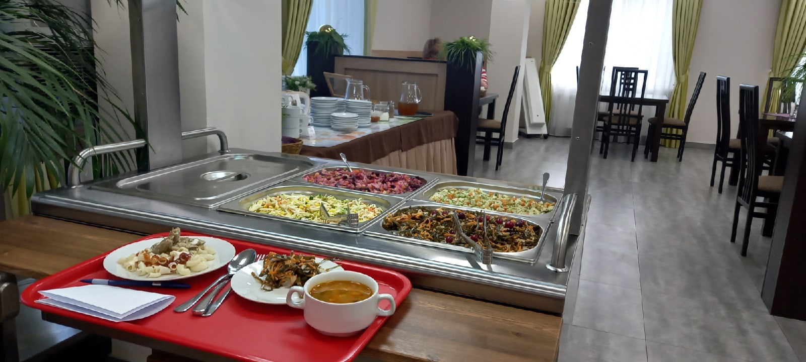 В столовой санатория-профилактория "Энергетик" предусмотрено 3-разовое лечебно-профилактическое питание для гостей. Питательный рацион оформлен специальной цветовой маркировкой, что позволяет гостям легко ориентироваться в разнообразных диетах. Те, кто приобрел путевку без питания, всегда могут расплатиться за завтраки, обеды или ужины на месте.