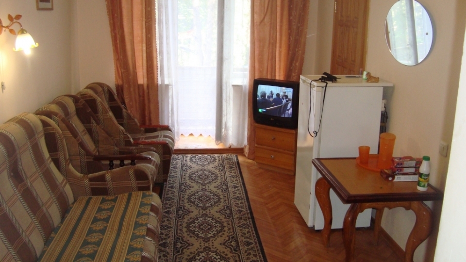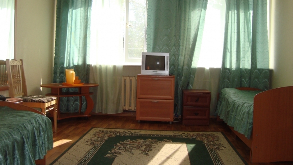 В номере: телевизор, шкаф, 2 тумбочки, 2 кровати