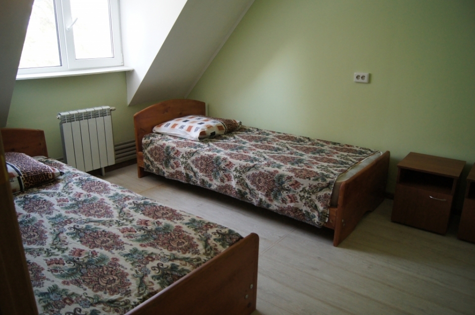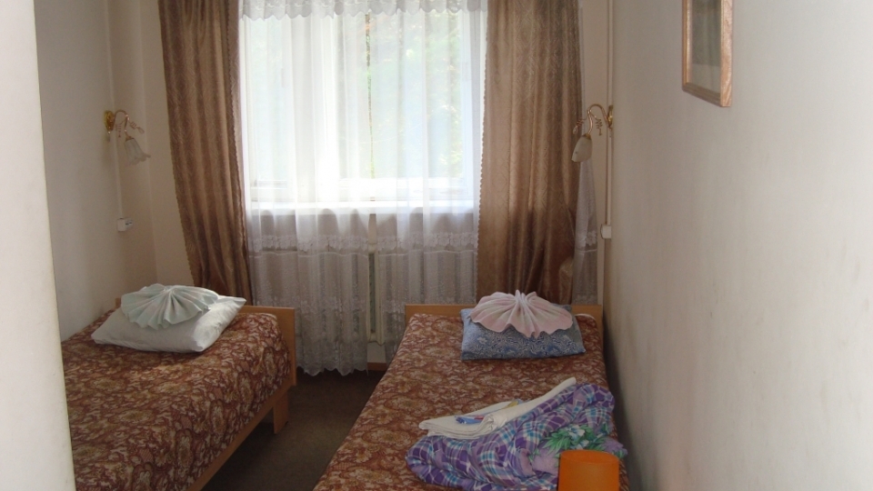 В номере: 2-е односпальные кровати, шкаф для одежды, ночники, тумбочки