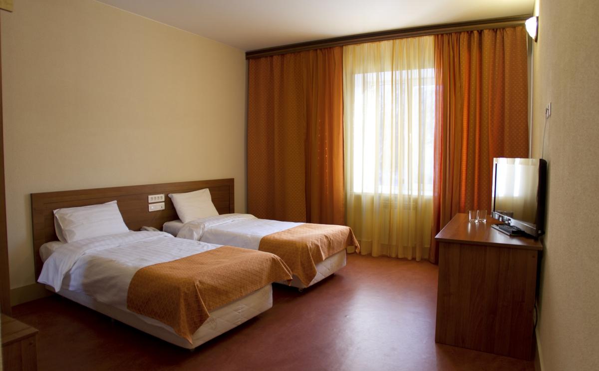 В каждом номере – душ, санузел, кондиционер, небольшой холодильник, телевизор, фен, шкаф для одежды, тумбочки; утюг выдаётся по запросу.