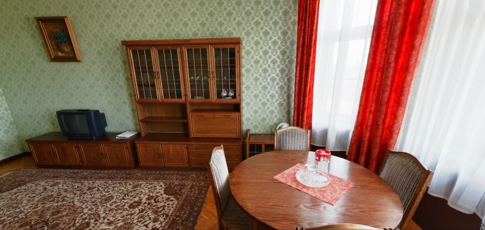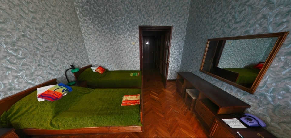 В номере: Кресло, диван, 2 кровати, торшер, шкаф, холодильник, телевизор, телефон, электрочайник.