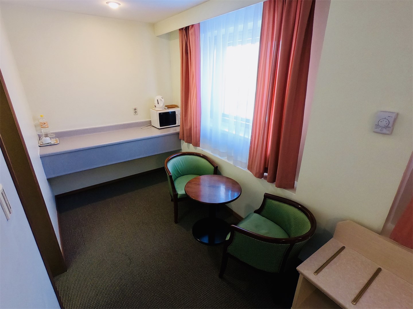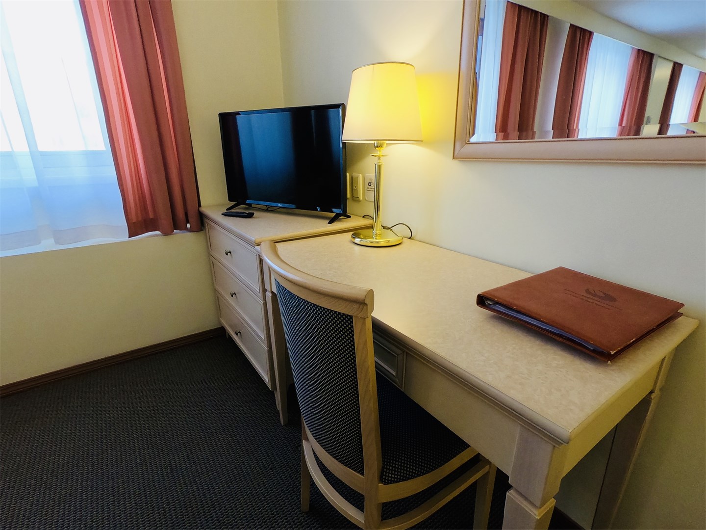 В номере: вешалка, зеркало, кровать односпальная, прикроватная тумбочка, стул, шкаф, кондиционер, мини-холодильник, набор посуды, сейф, телевизор, телефон, чайный набор посуды, электрочайник