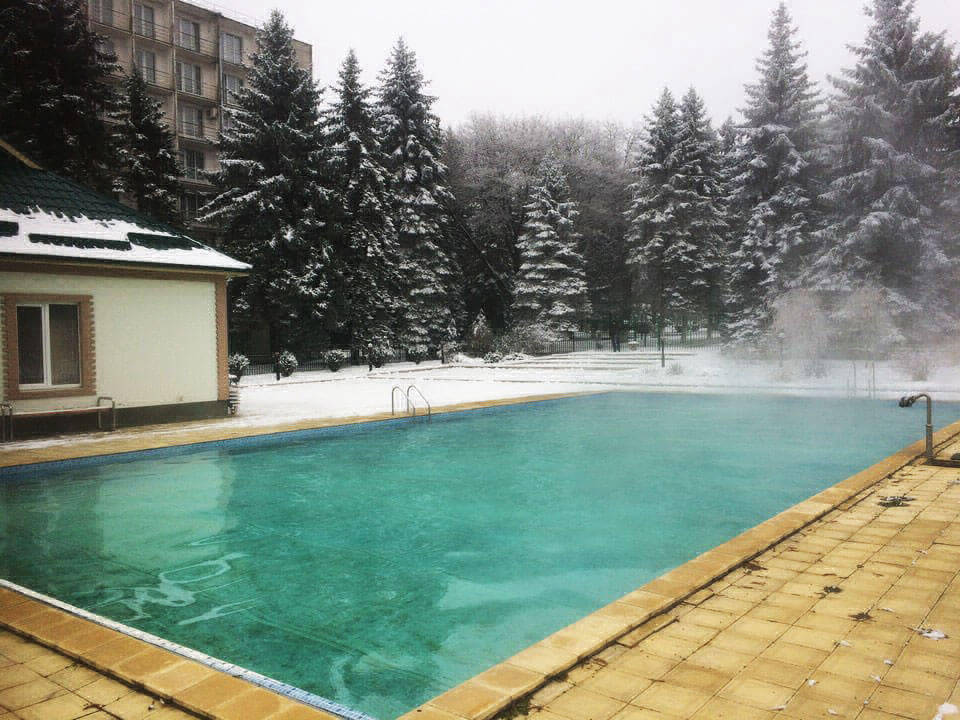 • размер - 20х10 м, вода минеральная, подогреваемый