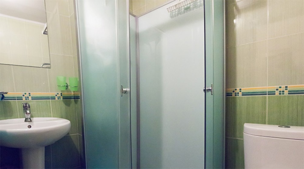 В номере: две полутораспальные кровати, прикроватные тумбы, стол, стулья шкаф, мини-холодильник, телевизор