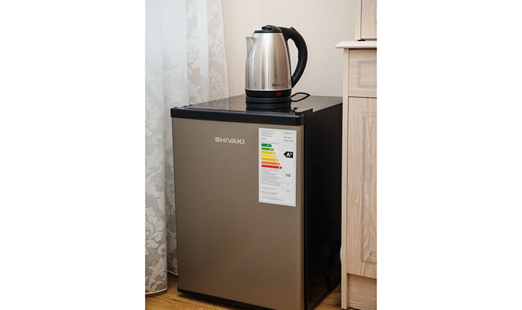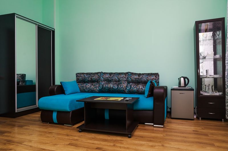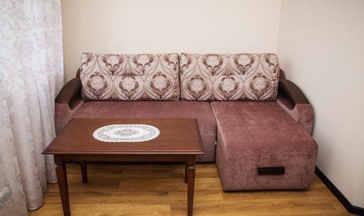В номере: диван раскладной, кровать двуспальная, прикроватные тумбочки, столик журнальный, шкаф-купе, мини-холодильник, набор посуды, телевизор ЖК, чайный набор посуды, электрочайник