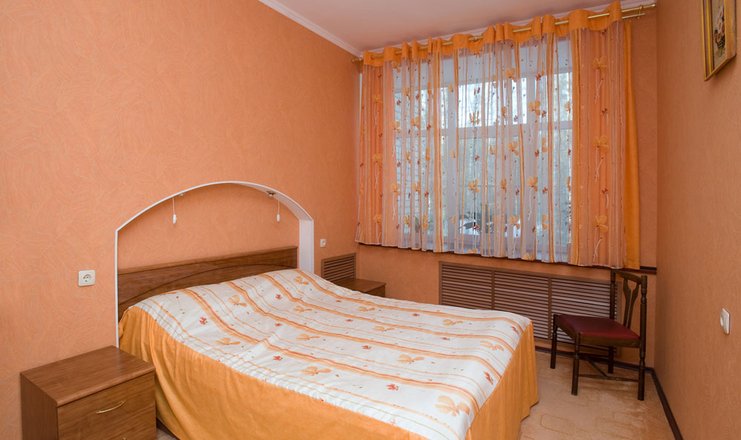 Размещение: до 2 чел. Особенности: беспрепятственное маневрирование человека на инвалидной коляске по номеру, расширенные дверные проёмы, специальные поручни в санузле, специализированная ванная комната («слив в пол» или специализированная ванна с открывающейся дверью), кнопка экстренного вызова медицинского персонала, телефон для внутренней связи, возможность беспрепятственного выезда на балкон