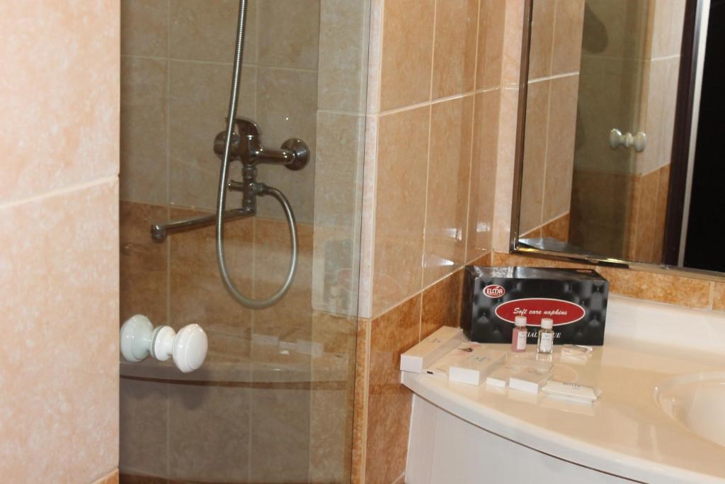 В номере: кровать полутороспальная, прикроватная тумбочка, стол, стул, шкаф, кондиционер, телевизор, телефон, сейф