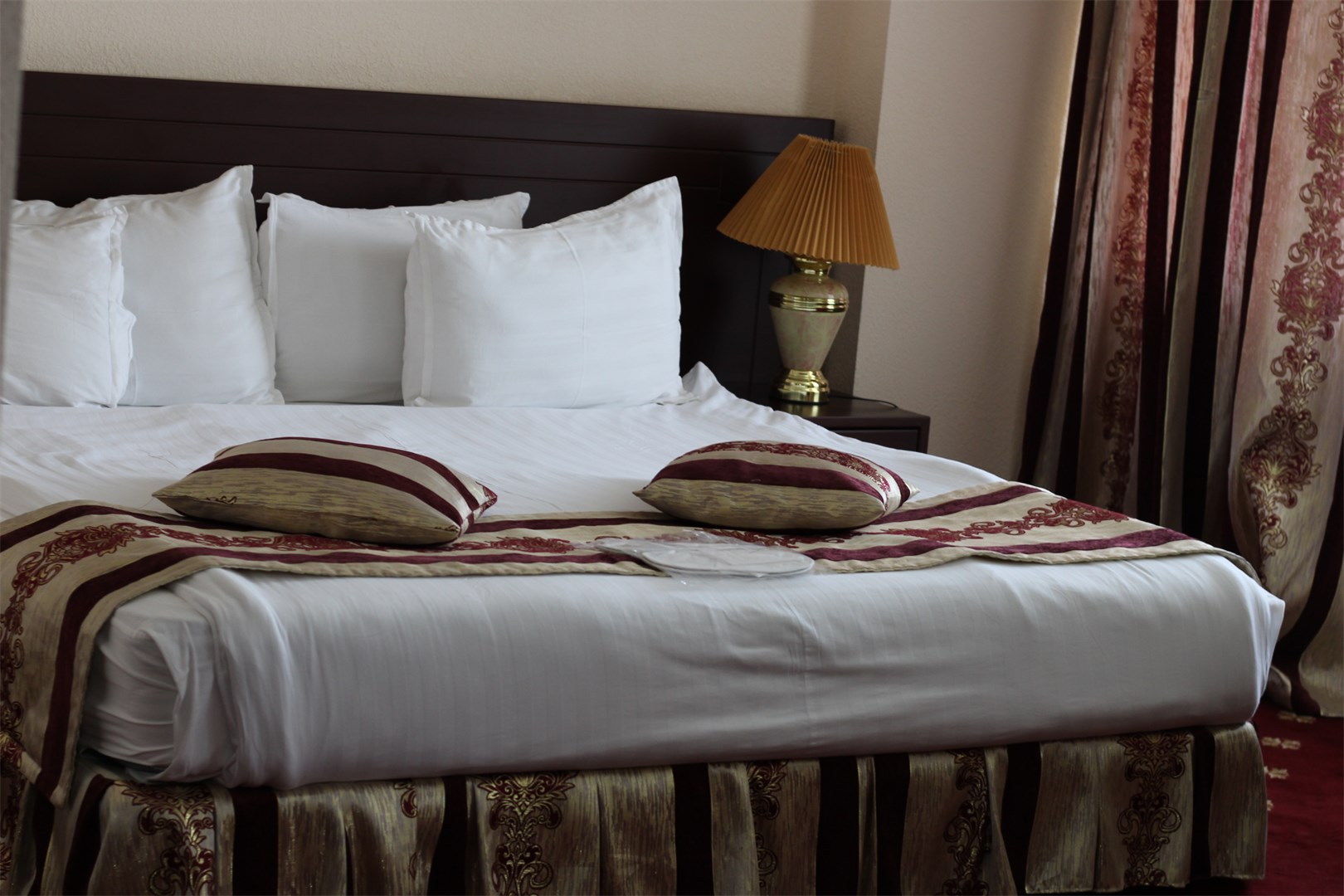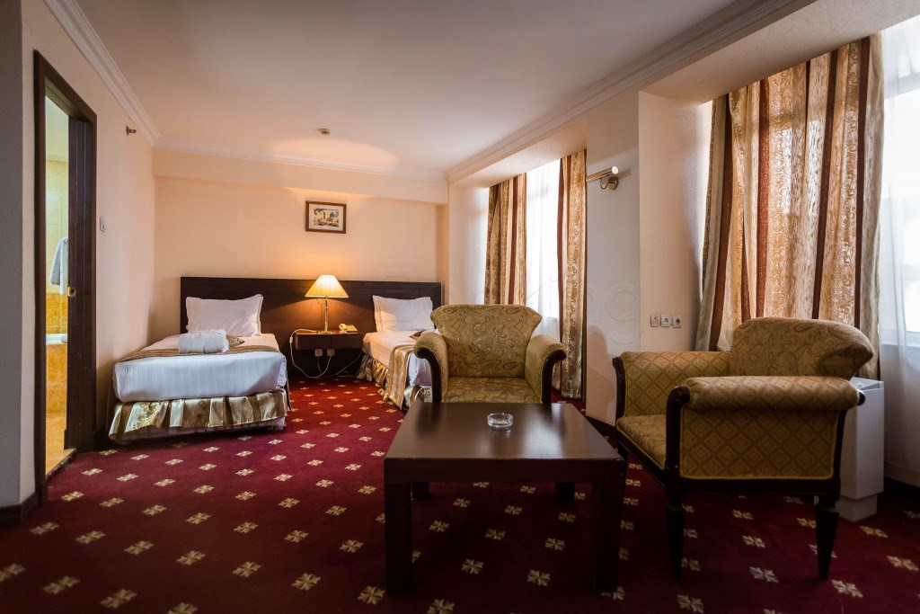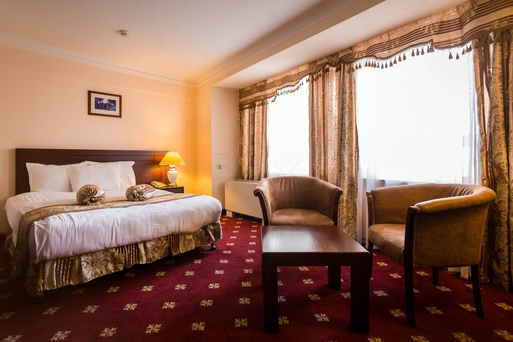 В номере: кровать двуспальная, гардеробная, зеркало, кресло, стул, шкаф-купе, письменный стол, вешалки, шкаф для одежды, кондиционер, телевизор, телефон, сейф